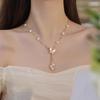 S925 Sterling Silver Butterfly Tassel Pearl Necklace for Women's Instagram French Niche Light Luxury Style Baroque Rice Grain Collarbone Chain