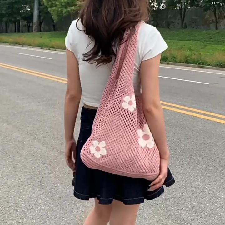 Nowa Prosta Retro Torba na Ramię Torebka dla Kobiet Moda Słodki Kwiat Ażurowa Torba Tote Duża Pojemność Damska Torba na Zakupy