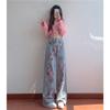 Flower Jeans Woman High-Waist Loose-Fit Pants Personality Printed Denim Harem Pants Women's Jeans