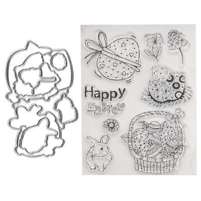 Metalowe Wykrojniki Clear Stampy Królik Wielkanocny Jajka Scrapbooking Album Dziennik Fotograficzny DIY Rzemiosło Tworzenie Kart Dekoracje Domowe