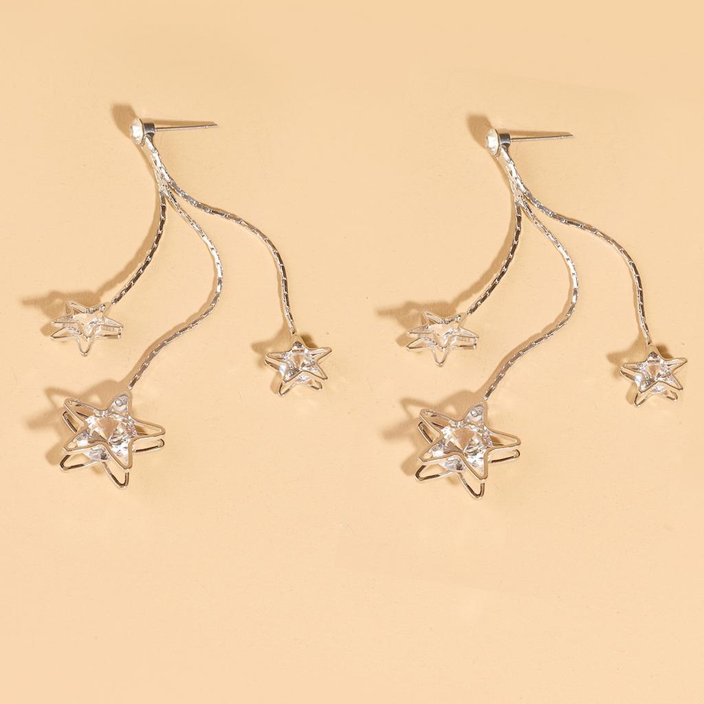 Nowe Kolczyki Pentagram Cyrkonia Długie z Frędzlami, Modne Temperament Słodkie Kolczyki Kobiety