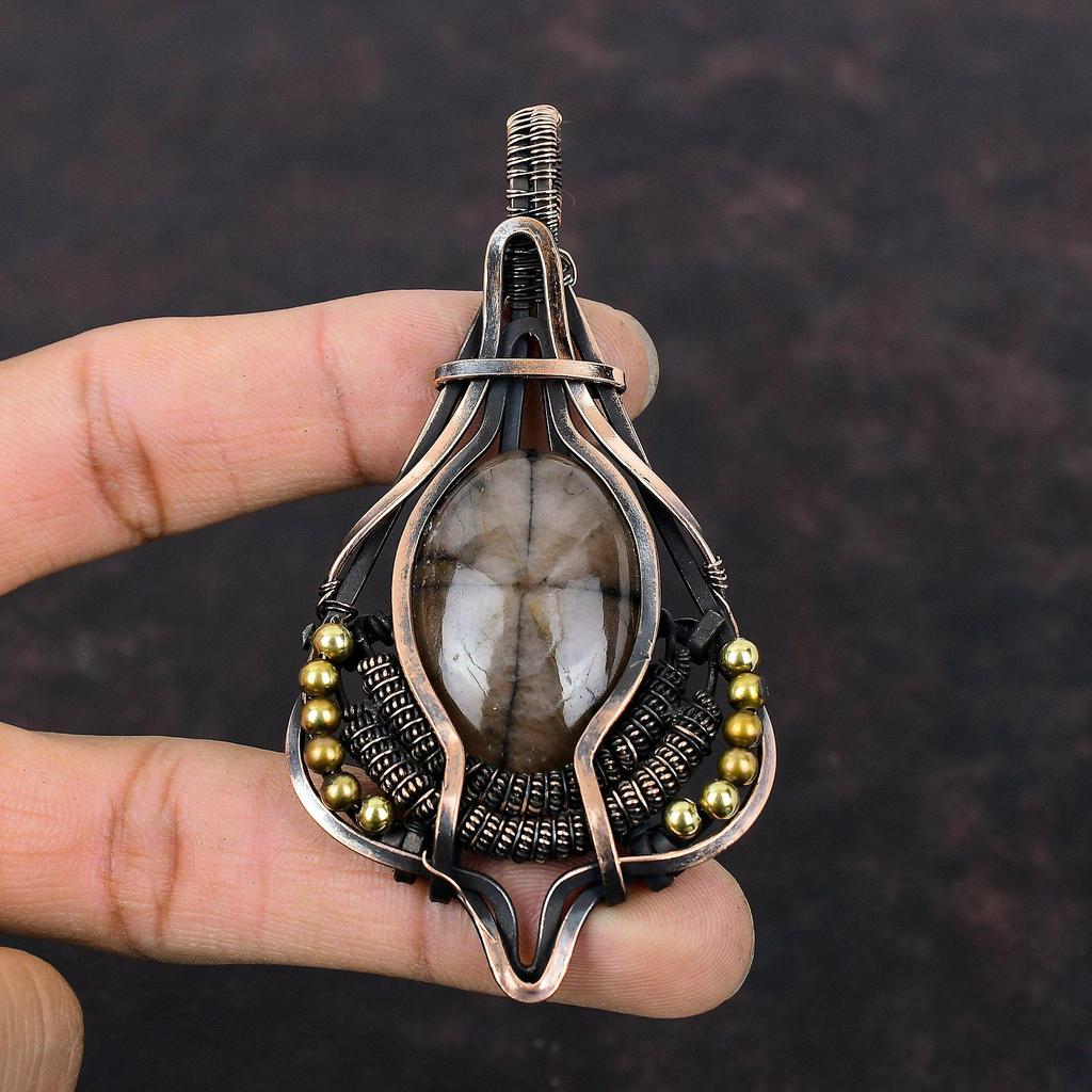 Zawieszka z Kamieniem Chiastolitowym Owinięta Miedzianym Drutem Ręcznie Robiona Biżuteria z Chiastolitu Prezent Dla Niej Biżuteria Owinięta Miedzianym Drutem Niesamowita Zawieszka