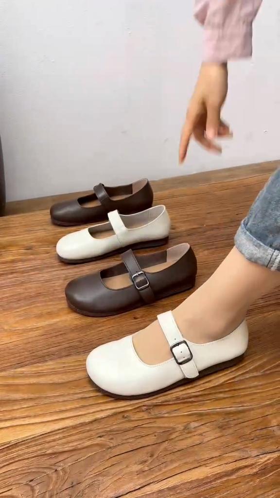 Johnature Ręcznie robione, oryginalne, skórzane, płaskie buty, miękka podeszwa, okrągły nosek, codzienne, uniwersalne buty damskie