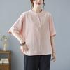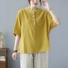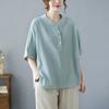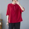 Koszula z bawełny i lnu w jednolitym kolorze, z półotwartym kołnierzykiem i rękawami w kształcie nietoperza, w dużym rozmiarze, damska, letnia koszula literacka