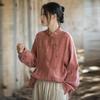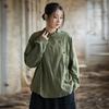 Johnature Koszule damskie vintage Topy Stojak Długi rękaw Guzik Wiosna Tie-dye Chiński styl Bluzki