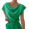 BITCED Letnia Jednolita Prosta Koszula Damska z Krótkim Rękawem i Kołnierzykiem Swing Top dla Kobiet