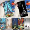 Czarny pokrowiec tpu na Samsung Galaxy A50 50S A30S A10 A01 A11 A21S A31 A41 A51 A71 M21 M30S S10 LITE Flaga Francji Paryż Wieża Eiffla