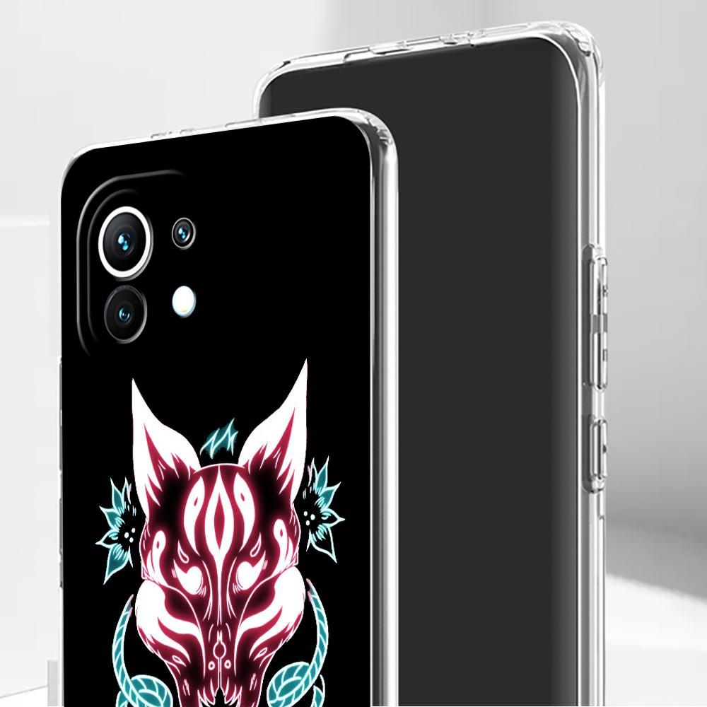 Samurai Oni Mask neon etui na telefon do Xiaomi Mi 12T 10 12 Lite 11 Ultra 11X 11T Pro 11i Poco X4 X3 NFC F3 M3 M4 5G Przezroczysta obudowa