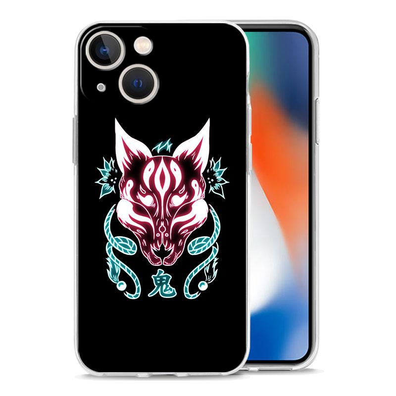 Luksusowe przezroczyste etui na telefon iPhone 15 14 13 12 11 Pro Max XS X XR 7 8 Plus Przezroczysta, odporna na wstrząsy obudowa Samurai Oni Mask neon