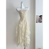 Elegancka słodka sukienka wróżki damska wiosenna letnia sukienka midi z długim rękawem koreańska, w stylu vintage jednokolorowa sukienka z wysokim stanem