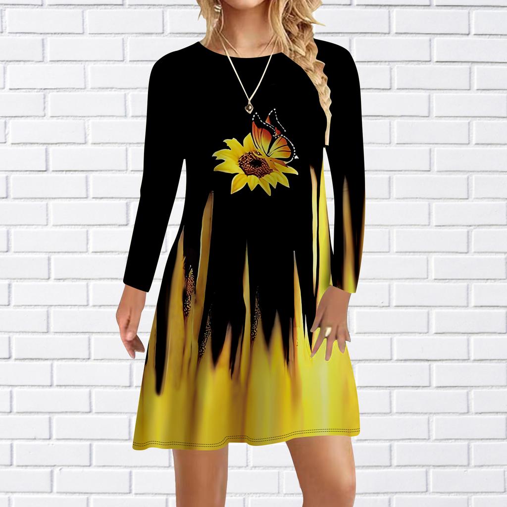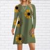 Women Casual Dress Autumn Green Sunflowers Print Dresses For Women O-neck Short Sleeve Dress Plus Size