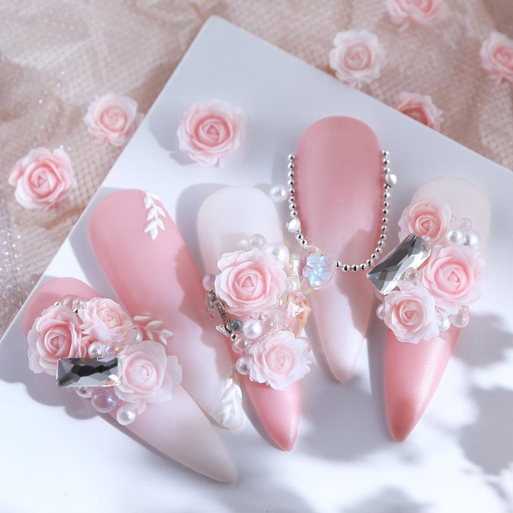 3 opakowania 30 grawerowanych róż gradientowych akcesoriów do paznokci, piasek smoczy, kamienie szlachetne, kwiaty róży ze stalowymi koralikami i perłami, akcesoria do paznokci