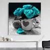 Vintage Teal Turkusowy Obraz na Ścianę Kwiat Róży Wydruki na Płótnie Obrazy Romantyczne Plakaty o Miłości do Dekoracji Sypialni Salonu Cuadros
