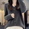 Women Spring And Summer V-neck Loose Knit Cardigan Pure Wool Slimming Temperament Sweater Casual Style Sweater