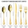 20 szt. Wzorzyste sztućce ze stali nierdzewnej 410 czarny złoty zestaw sztućców nóż ze stali nierdzewnej widelec łyżka zastawa stołowa zestaw sztućców festiwal naczynia kuchenne prezent
