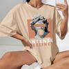 Moda damska Kreatywny gipsowy awatar litery nadruk T-shirt Zabawny swobodny okrągły dekolt Krótkie rękawy T-shirt Letnia damska koszulka