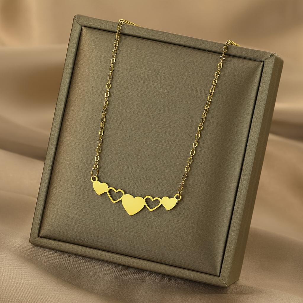 Golden Color Heart-shaped Pendant Necklace Alloy Choker For Women Perfect Accessory For Daily And Party Occasions