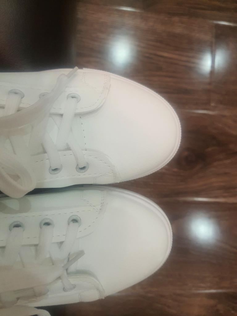 Świetne podstawowe trampki. Dołożono zapasowe sznurówki. W prezencie - gumki do włosów. Na jednym są małe zagniecenia, widocznie podczas transportu.