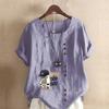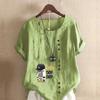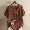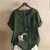 Damska Koszulka T-shirt z Okrągłym Dekoltem i Krótkim Rękawem Casualowa Bawełniana Lniana Koszula z Nadrukiem Postaci z Kreskówek Letnia Bluzka Top Plus Size