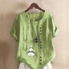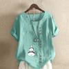 Damska Moda T-shirt z Krótkim Rękawem i Okrągłym Dekoltem z Nadrukiem Pandy Casual Bawełniano-Lniany T-shirt Graficzny Rekreacyjny Luźny Letni Bluzka Top