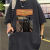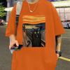 Nowy Letni Męski T-shirt Modowy z Nadrukiem Kota w Stylu Malarstwa Olejnego Męski T-shirt Top