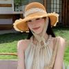 Damski kapelusz słomkowy z szerokim rondem, sznurowany, plażowy, składany, chroniący przed słońcem