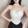 Women's Halterneck Slim Knitted Sleeveless Strapless Vest Three-dimensional Flower Crop Top