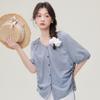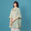 Women's Waffle T-shirt Summer Lapel Collar Drawstring Design Girls' Solid Tees Short Sleeve Casual Loose Oversized Tops