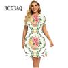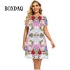 Butterfly Flower Print Summer Dress Women Oversized Short Sleeve Dress Casual Pullover O-Neck Loose Party Dress Ladies Vestidos