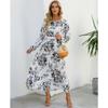 Wiosna Lato Boho Damska Sukienka Maxi Casual Długi Rękaw Wysoki Stan Plażowa Kobieta Szyfonowe Sukienki Kwiatowe Vestidoes Mujer