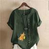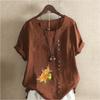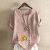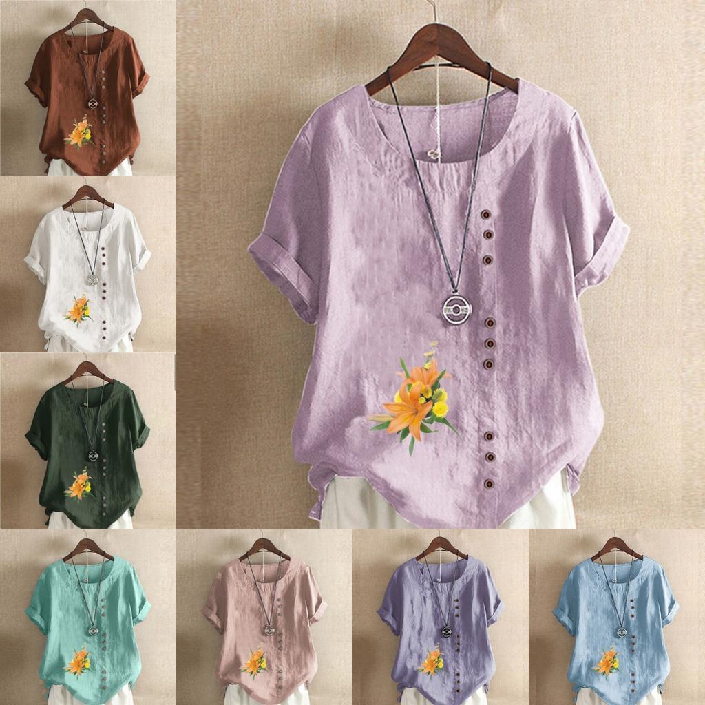 Women's Fashion Flower Pattern Print Short Sleeve T-shirt Loose Cotton Shirt Casual Loose Summer Blouse Tops Plus Size