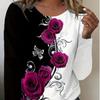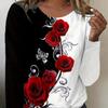 Bluzki damskie T-shirt z długim rękawem z okrągłym dekoltem i kwiatowym nadrukiem 3D róży Jesienny casualowy dopasowany sweter Damska bluzka z długim rękawem