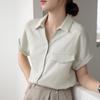 GMXIA Women's Summer White Short Sleeve Shirt Women's Thin Small V-Neck Blouse Loose Draped Career Tops