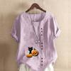 Women's Fashion Round Neck Short Sleeve T-shirt Casual Cotton Linen Graphic Shirt Leisure Pumpkin Prined Summer Blouse Tops