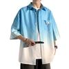 Podnieś swój swobodny styl dzięki tej męskiej koszuli z blokami kolorów gradientowych. Wykonana z dbałością o szczegóły, ta modna koszula wyróżnia się wyjątkowym gradientem kolorów, który przechodzi od koloru do bieli, tworząc wizualnie atrakcyjny wygląd. Kołnierz z klapami i półrękawy dodają odrobinę wyrafinowania, a mała ozdobna kieszonka na piersi podkreśla jej swobodny urok.
