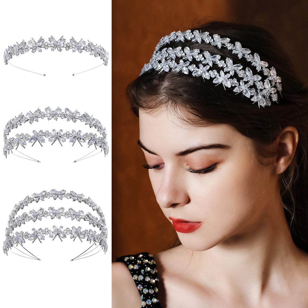 Nowa wielowarstwowa opaska do włosów z cyrkoniami, akcesoria do włosów dla kobiet na co dzień, luksusowa, w całości diamentowa, super błyszcząca opaska motylkowa, hurtowa