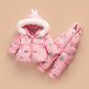 -30° Dziecięce Dziecko Zagęścić Ciepłe dwuczęściowe Garnitury Nadrukowany swobodny płaszcz z kapturem i kombinezon Miękkie zestawy