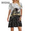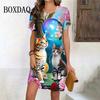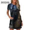 Sukienka z grafiką Starry Sky Cat dla kobiet, tie-dye, drukowana w 3D, luźna, swobodna, plus size, sukienka z krótkim rękawem, modna, hip-hopowa, kawaii