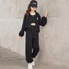 Modne stroje dla dziewcząt Oddychająca kurtka z kapturem Stylowe spodnie wyszczuplające z szerokimi nogawkami Zestaw trzyczęściowy
