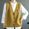 Kamizelka swetrowa damska luźna retro kamizelka luźna ażurowa ręcznie haftowana dzianinowa jednolity kolor vintage kamizelka