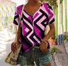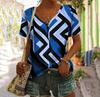 Moda damska odzież 3d krzywa koszulka z nadrukiem Casual dekolt w serek nowa abstrakcyjna damska koszulka ponadgabarytowa odzież uliczna topy z krótkim rękawem