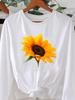 Bluzki Damskie Kolorowy Nadruk Słoneczników Okrągły Dekolt Długi Rękaw T-shirt Jesień Casual Slim Sweter Damska Bluzka z Długim Rękawem