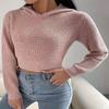 Damski sweter dzianinowy z kapturem, jednolitym kolorem, wiązaniem z tyłu, odkrytymi plecami, długim rękawem, swobodny sweter do pracy