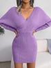 Sukienka sweterkowa z dekoltem w serek, jednolity kolor, elegancka, z długim rękawem, dopasowana, luźna, swobodna sukienka w stylu nietoperza