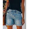 Moda Uliczna Lato 2024 Podwinięte Brzegi Piercing Proste Spodnie Damskie Szorty Jeansowe