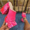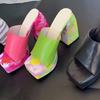 Moda 2024 Nowe Tkane Kolorowe Nadruki Kwadratowy Nosek Gruba Podeszwa Gruby Obcas Jednopaskowe Klapki Damskie Duży Rozmiar Sandały na Wysokim Obcasie