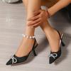 Moda Kobiety Cyrkonie Wysokie Obcasy Seksowny Węzeł Kokardka Czarny Szpiczasty Nosek Party Szpilki Moda Wsuwane Damskie Buty Ślubne