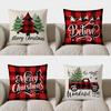 Poinsettia Black Check Pillow Cover Linen Printed Christmas Tree Letter Pillow Cover Cushion Cover