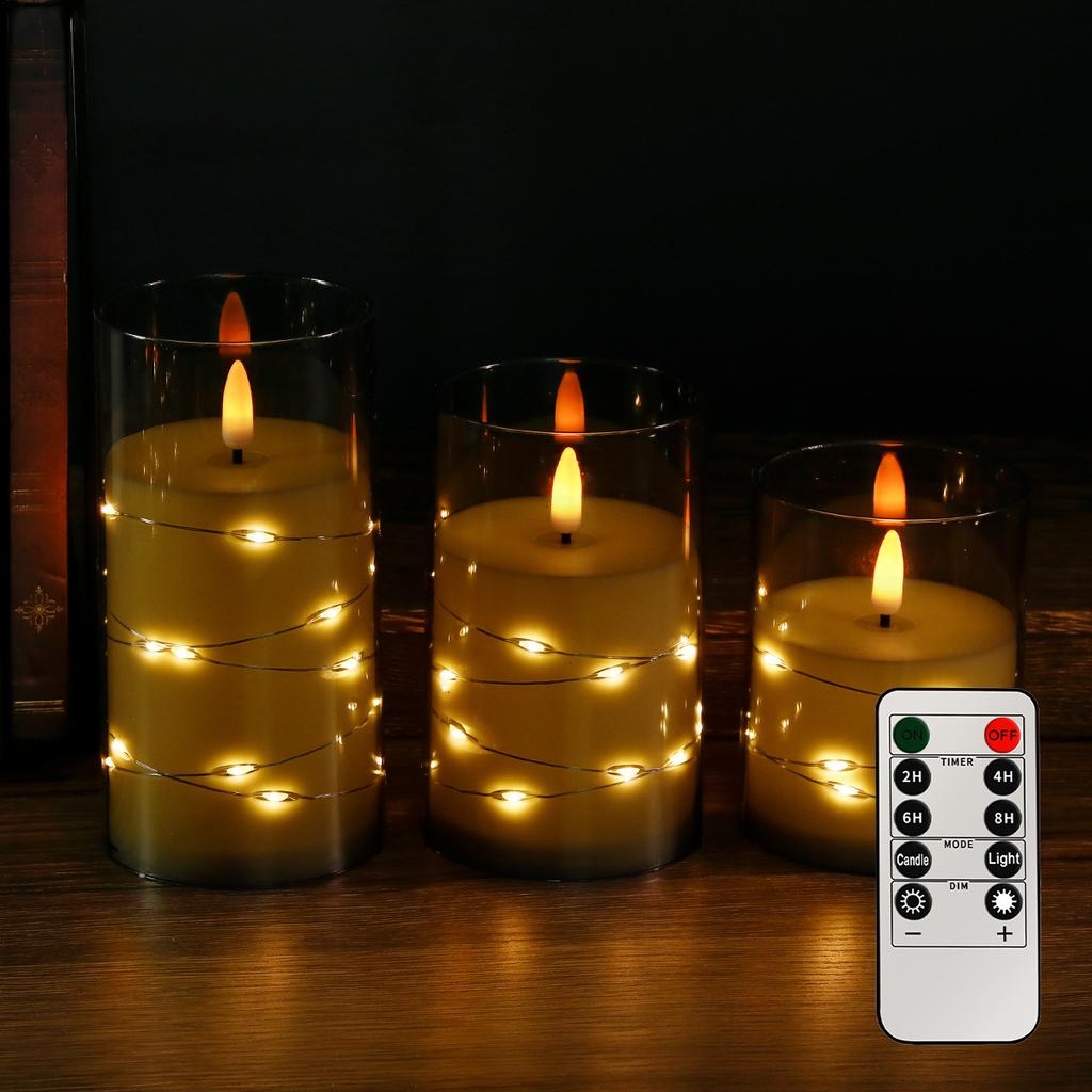 3 sztuki bezpłomieniowych świec LED z pilotem zdalnego sterowania, migoczące świece filarowe, świąteczne dekoracje na Halloween, lampa herbaciana