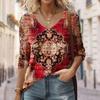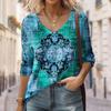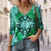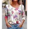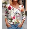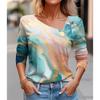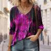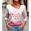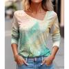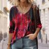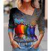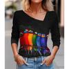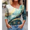 Seksowny diagonalny kołnierzyk z uniwersalnym cyfrowym nadrukiem 3D T-shirt damski na co dzień wiosna jesień długi rękaw koszulka rekreacyjna odzież